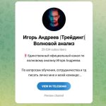 - Канал Telegram — «Игорь Андреев | Трейдинг | Волновой анализ», создан 9 марта 2021 года. На текущий момент в нем 29 600 подписчиков, среднее количество просмотров новых публикаций — около 4 000. Комментарии открыты, но активность крайне низкая.