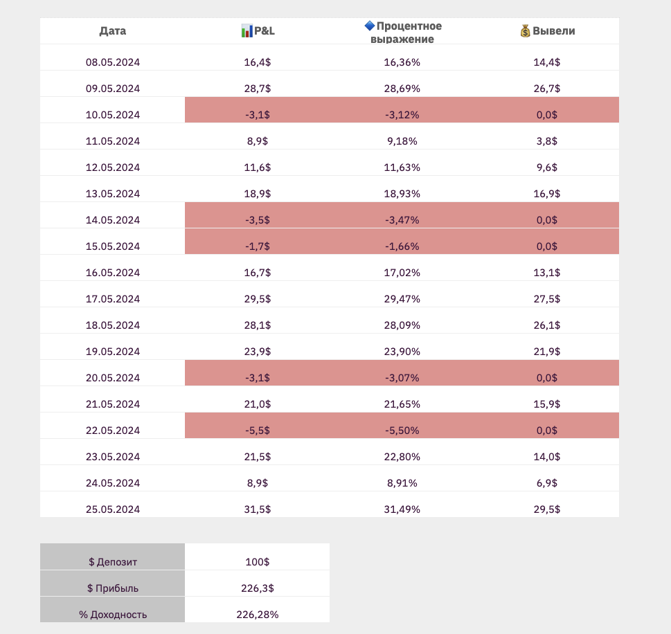 Впервые вывел деньги сегодня, зафиксировал доход за неделю, всё отлично.